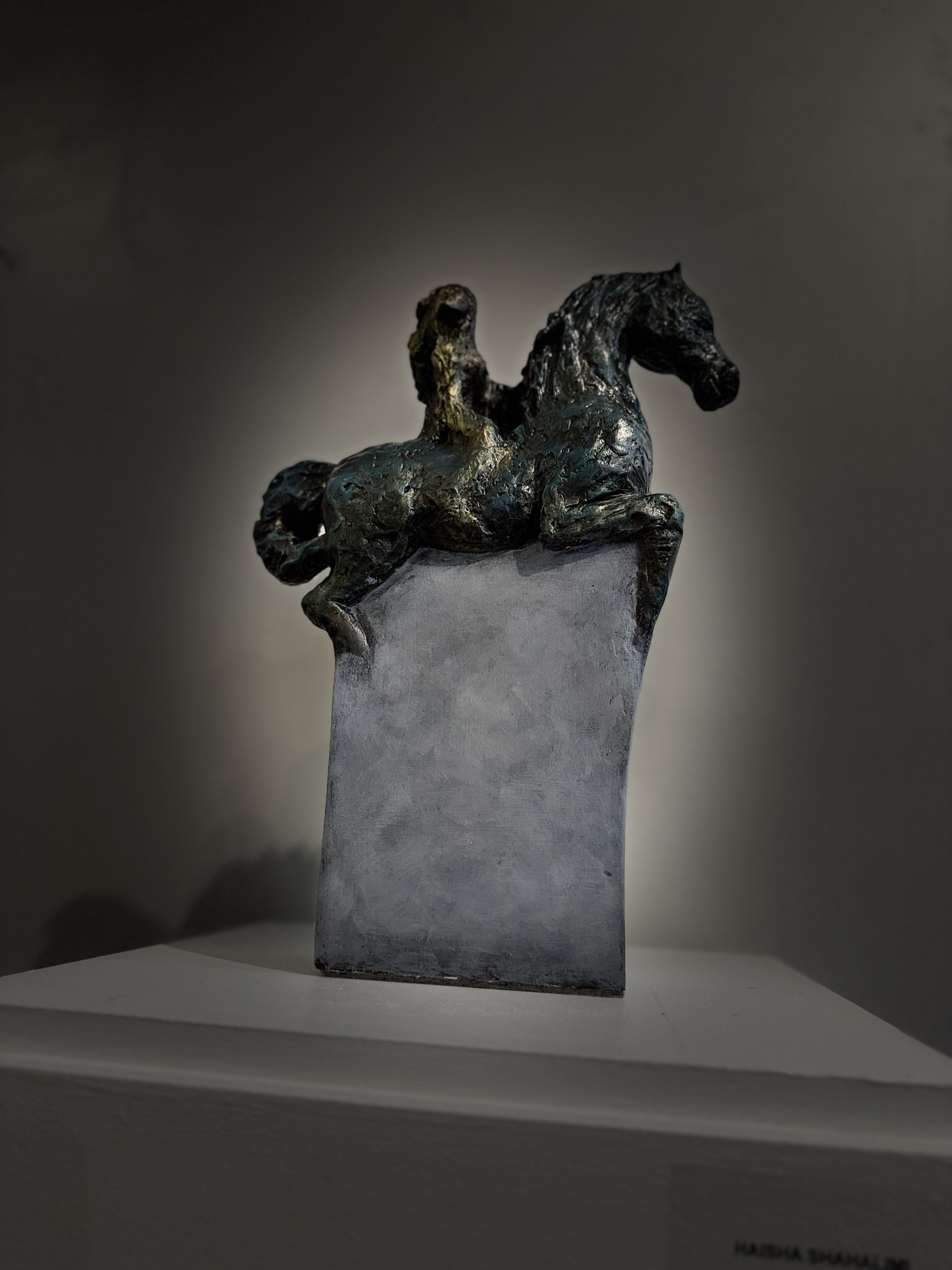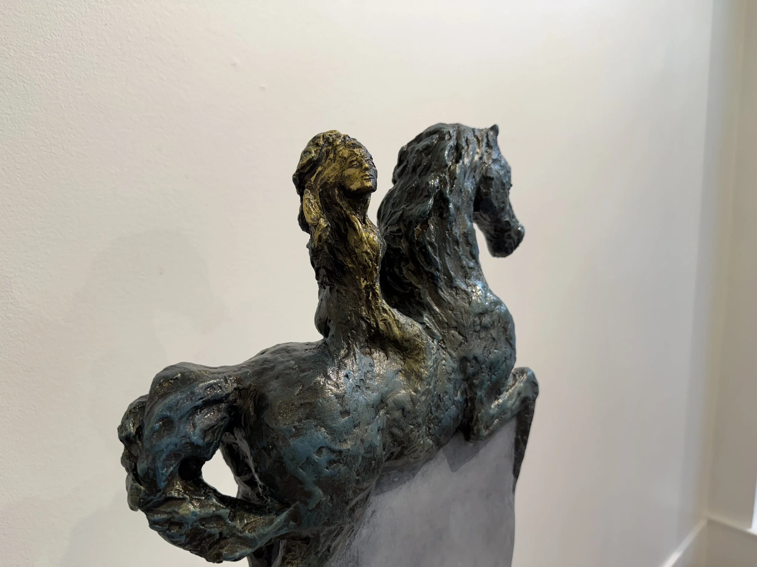 Rider Jan 14 Written By Studio Lothair Height 19” width 13” depth 4”Medium: Hydrostone, acrylic Patina$1,900.00 Studio Lothair